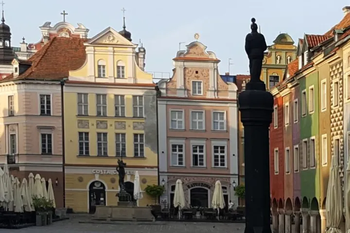 Stary Rynek w Poznaniu to historyczne serce miasta, zdominowane przez piękny renesansowy ratusz, uznawany za najpiękniejszy w Polsce. Codziennie o 12:00 z wieży ratusza ukazują się dwa koziołki, które trykają się rogami, co przyciąga tłumy turystów. Przed ratuszem stoi pręgierz – dawny symbol wymierzania kar. Wokół rynku znajdują się kolorowe domki budnicze, w których kiedyś handlowano, a dziś mieszczą się tam sklepy z pamiątkami. Na tyłach ratusza można zobaczyć dawną wagę miejską. Rynek to żywe miejsce, pełne historii i wydarzeń kulturalnych.